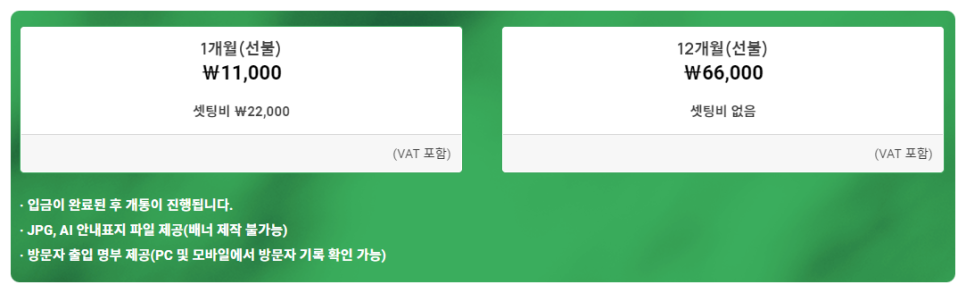 아톡비즈 안심콜의 가격은 1개월과 12개월 사용 시, 금액 차이가 발생합니다. 방문자 출입 인증 시스템을 필요로 하는 곳이 늘어나고 코로나 종식이 가깝지 않다고 판단을 하여, 1년 사용자에게 할인된 금액으로 제공해드립니다.