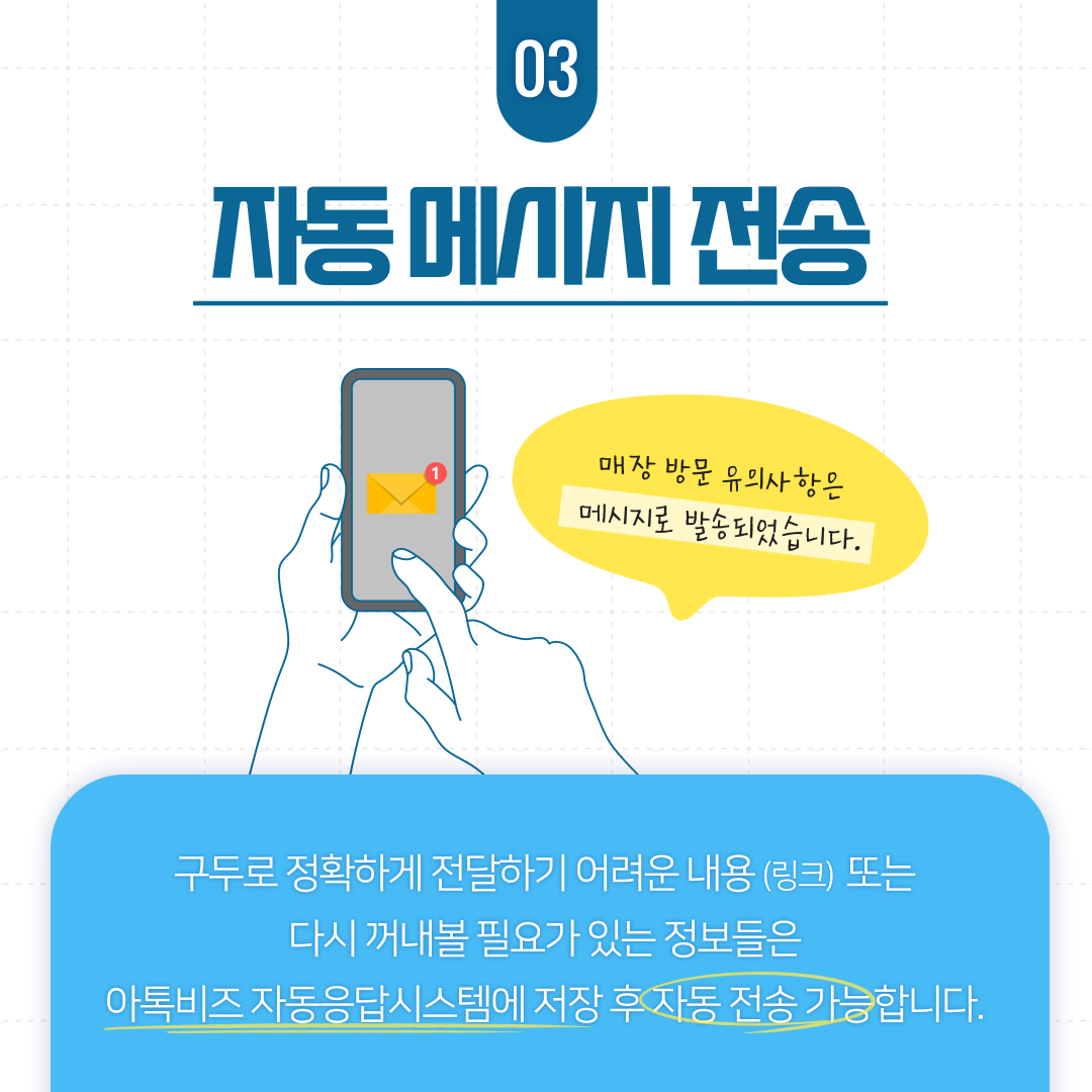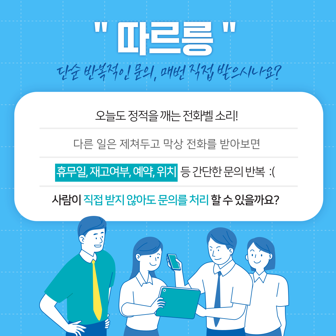 자동 발송할 수 있어 전화를 직접 받지 않고도 문의를 해결 할 수 있답니다.