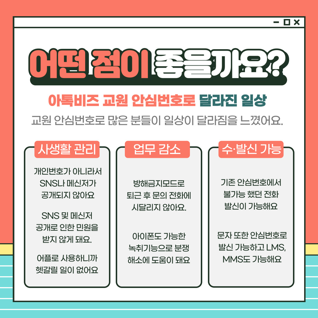 이렇게 좋은 아톡비즈 교원 안심번호, 우리 학교 전체가 쓸 순 없을까? 물론 가능해요!
