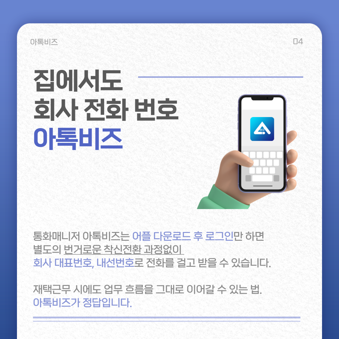 아톡비즈가 재택근무 업무 효율을 높여주는 든든한 통화 매니저가 되겠습니다.