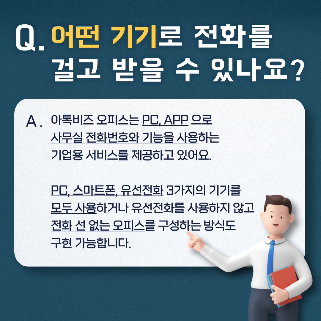 질문 2. 아톡비즈, 어떤 기기로 업무 전화를 걸고 받을 수 있나요?