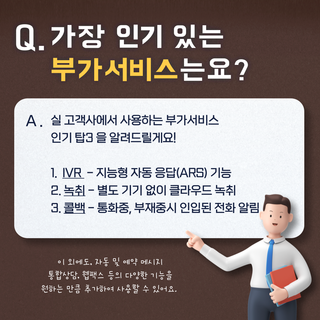 질문 3. 가장 인기 있는 부가서비스를 소개해주세요.