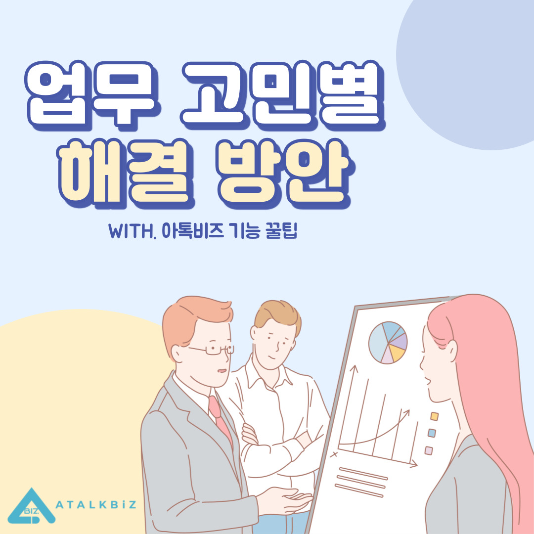 오늘 포스팅에서는 회사 생활하면서 느끼는 불편한 점과 그에 따른 고민들, 그리고 실제 문의로도 이어지는 사항들을 풀어서 소개해드릴까합니다. 다양한 고민들이 혼재하는 업무 환경에서, 아톡비즈 서비스가 맞춤으로 어떻게 도움이 될 수있을까요?