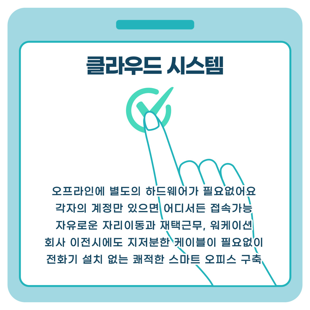◆별도의 하드웨어와 유선전화기가 공간을 차지하지 않고 지저분한 케이블이 없는 깔끔한 환경이 구축됩니다.