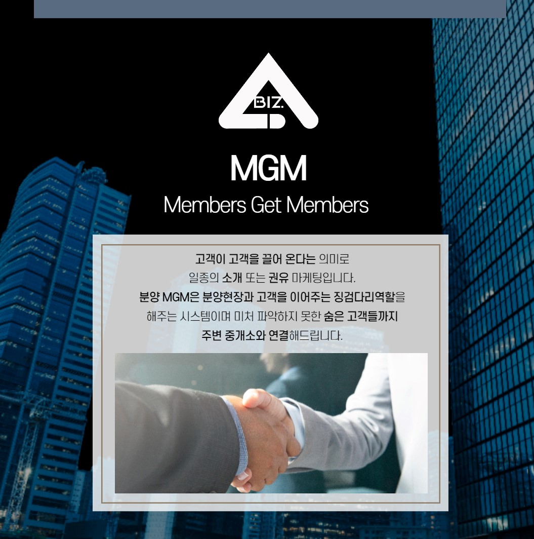 MGM이란 분양업체와 부동산이 함께 협업할 수 있는 서비스 마케팅입니다.