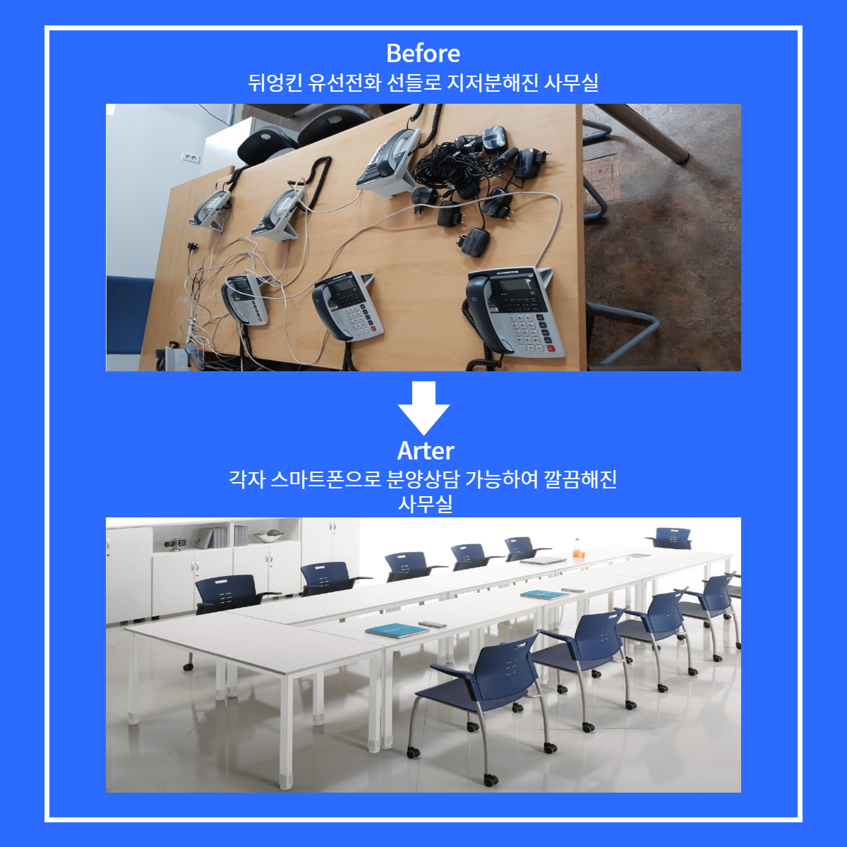 분양 홍보관이나 사무실 특성상 좁은 테이블에 여러 대의 전화기를 두고 사용하는 경우 사무실도 지저분해 보이고