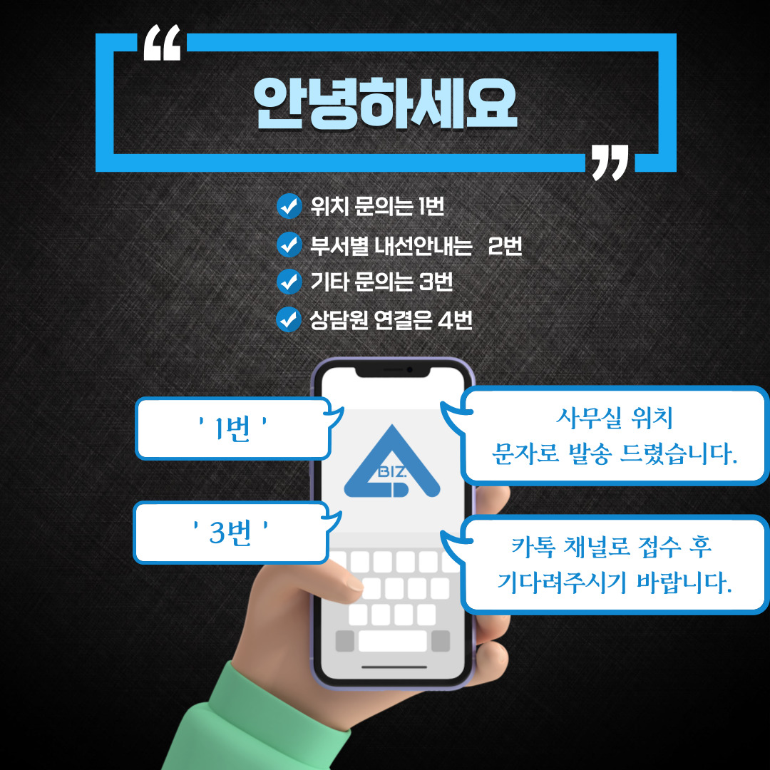 ✔ '아톡비즈' 회원님이 맞으시면 1번 아니시면 2번을 눌러주세요.