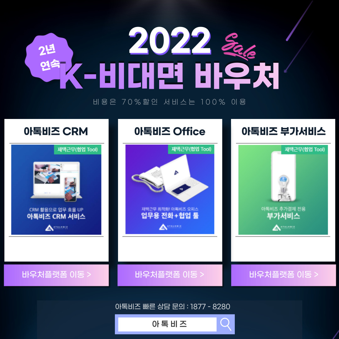 안녕하세요 비즈니스 통합솔루션 B2B브랜드 '아톡비즈' 입니다.