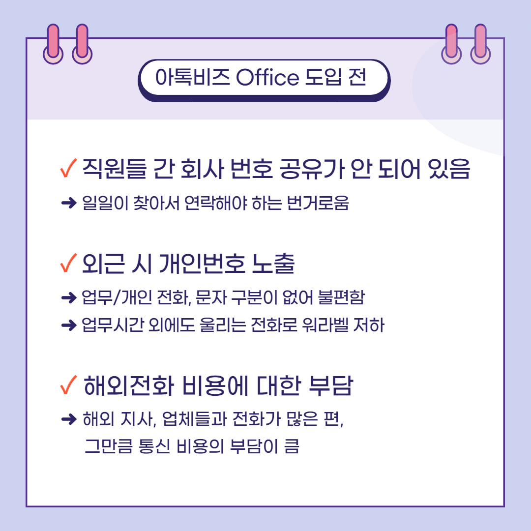 | 기업에 최적화된 솔루션 아톡비즈 오피스, 회사전화 자유롭게 사용하기 (0) | 2022.05.10 |