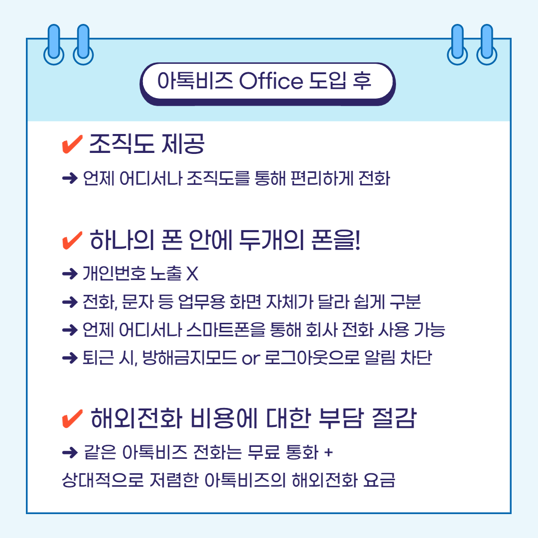 | 기업에 최적화된 솔루션 아톡비즈 오피스, 회사전화 자유롭게 사용하기 (0) | 2022.05.10 |