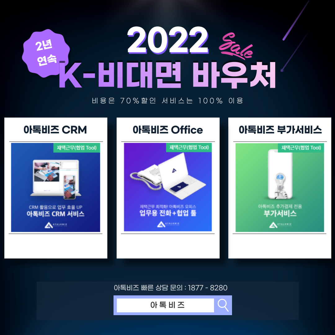 안녕하세요 기업 통신서비스 통합솔루션 B2B브랜드 아톡비즈 입니다.