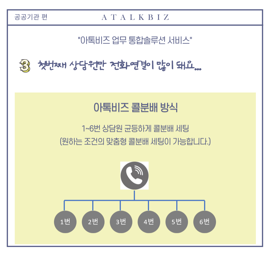 1번, 2번 상담원에게 전화가 몰리게되는 불편함이 발생합니다.