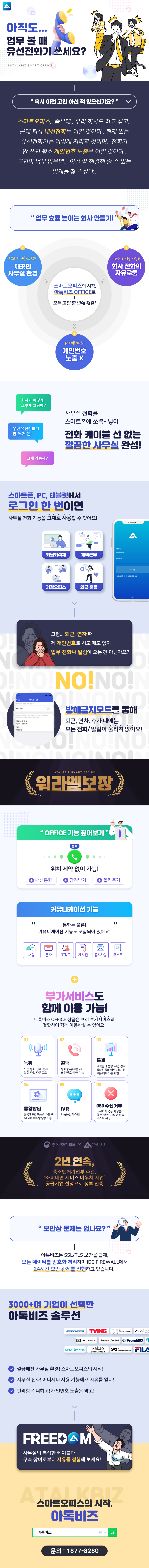 사무실전화 핸드폰으로 당겨받기는 스마트오피스 구축의 기본! 더불어 불필요하게 늘어진 전화 케이블 선을 아톡비즈 오피스 상품을 통해 깔끔하게 해결해 보세요!