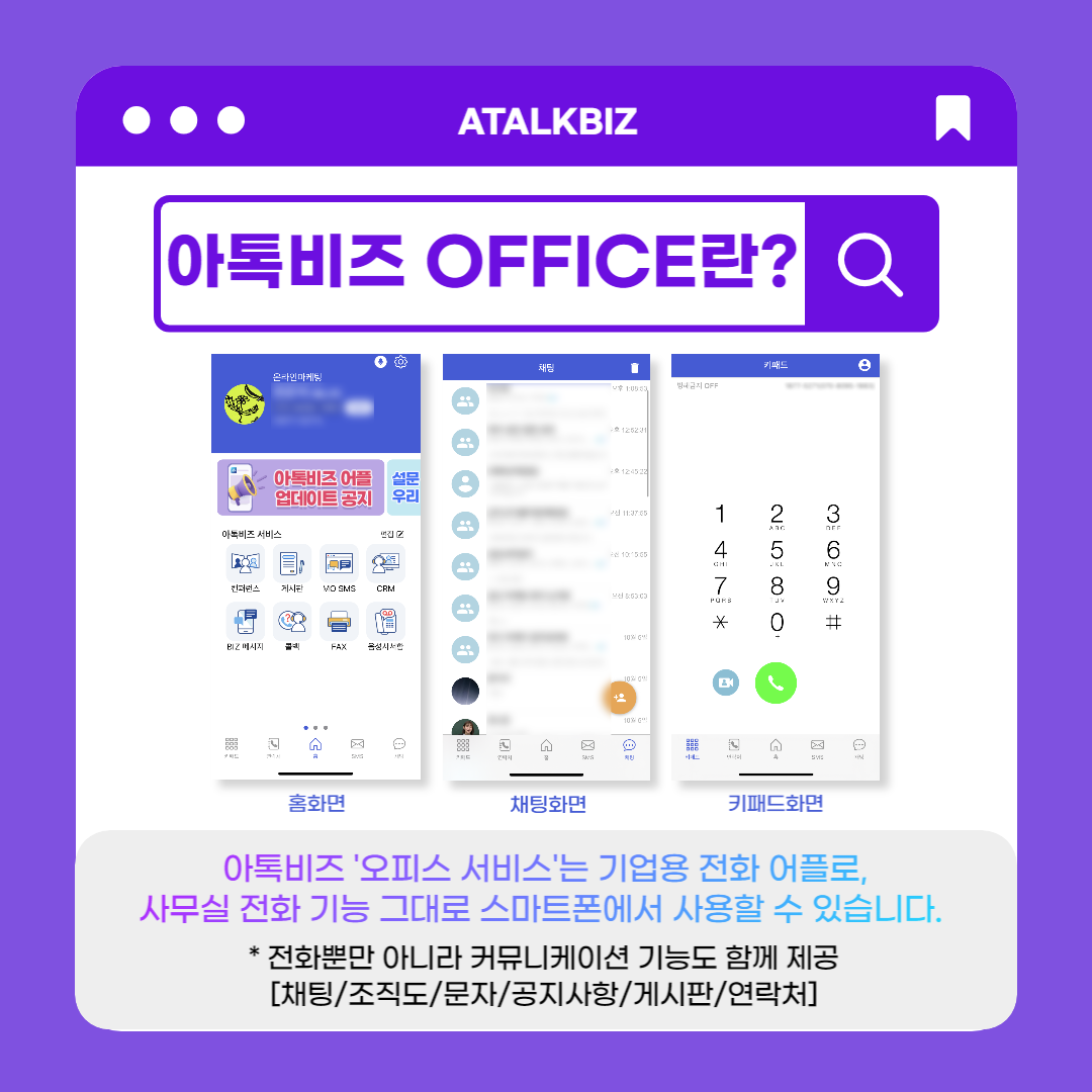 모바일인터넷전화, 기업용전화어플인 아톡비즈 'OFFICE'로 간편하게 시작할 수 있습니다. 😊