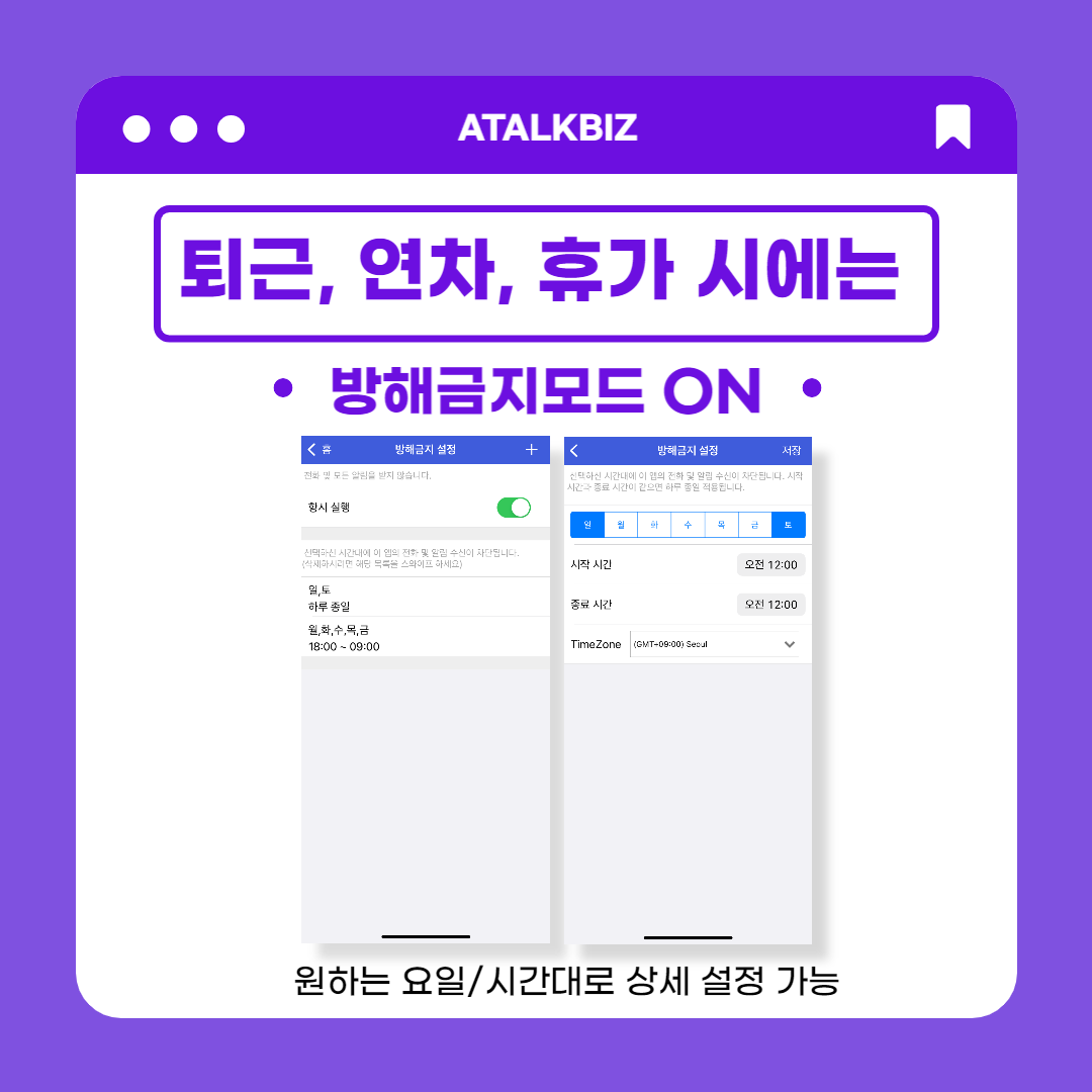 원하는 요일과 시간을 설정하여 개인 시간을 방해받지 않도록 해요!