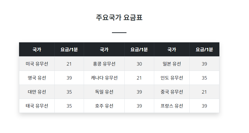 ※국가전체 요금표는 홈페이지에서 조회 가능합니다.