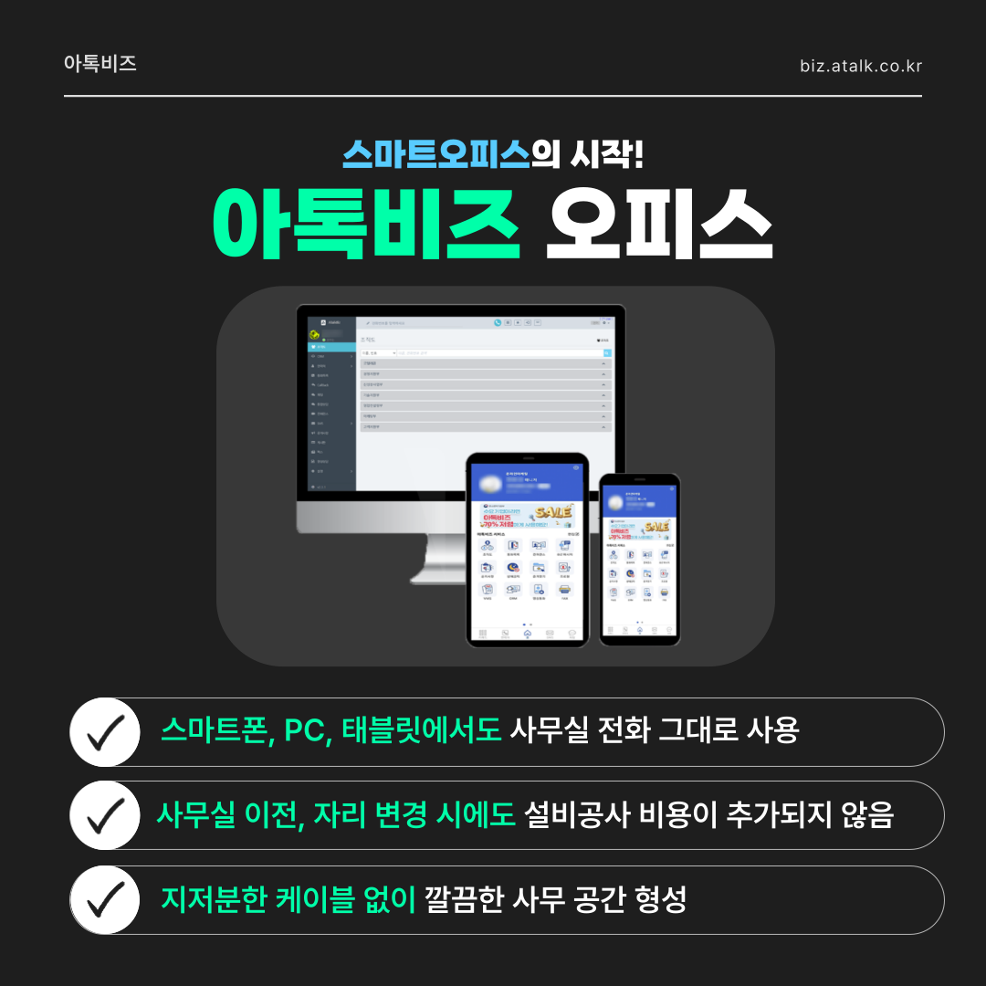 아톡비즈 오피스는 사무실 전화를 스마트폰에서도 그대로 사용할 수 있는 기능입니다!
