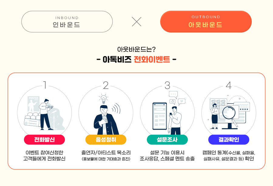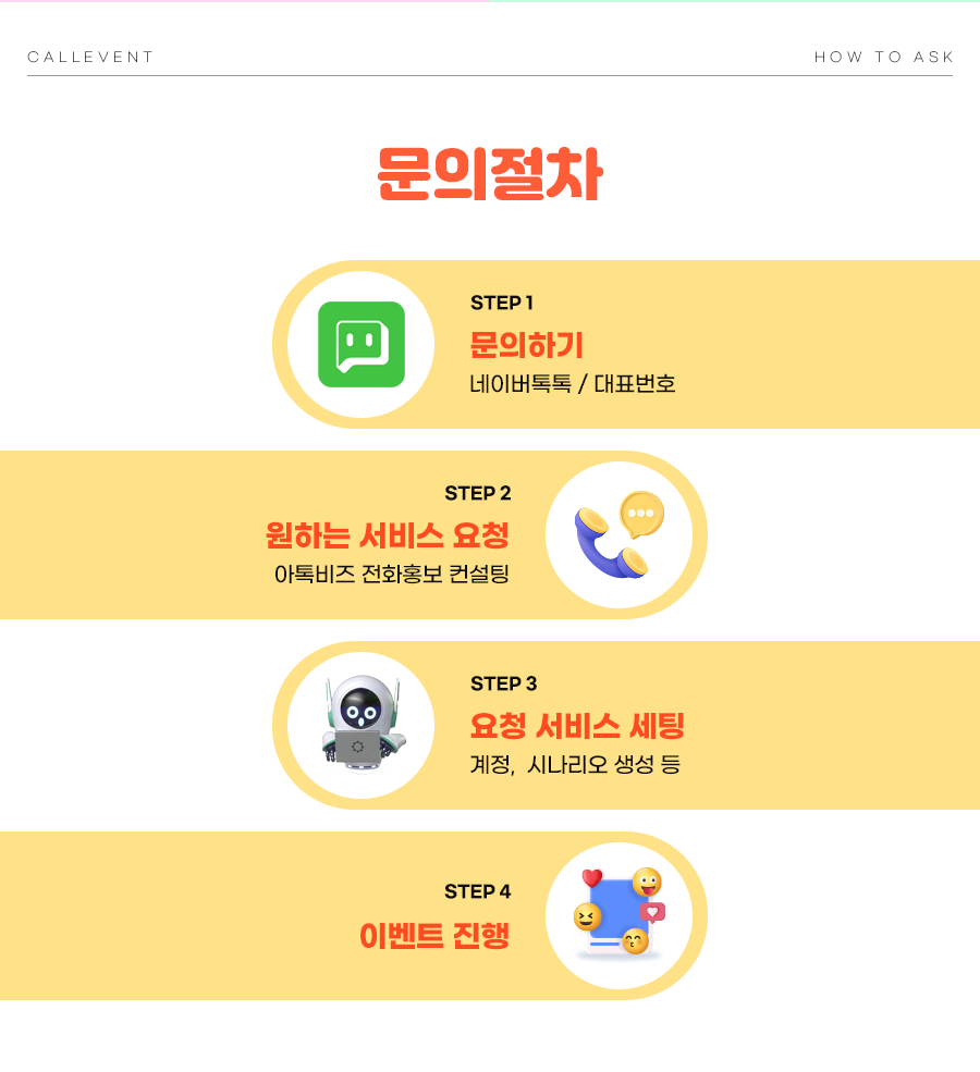전화이벤트는 회사에서 신청한 고객에게 이벤트용 전화를 대량으로 걸어 출연자/아티스트의 목소리를 송출하는 상품이에요.