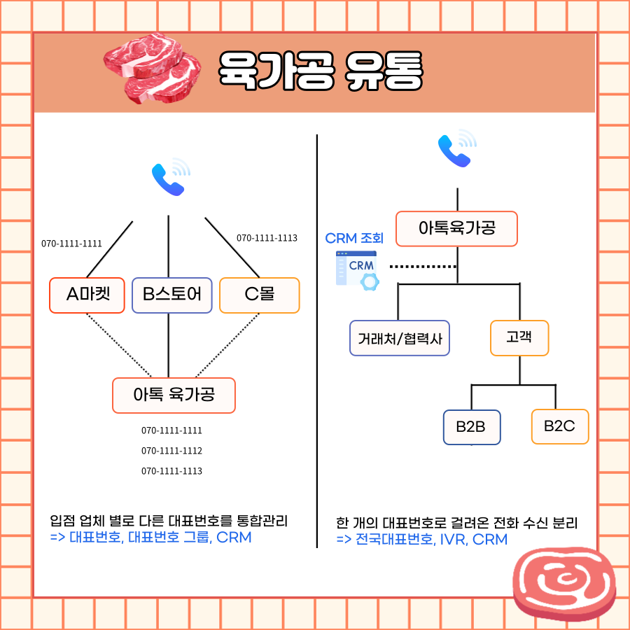 저희 아톡비즈에 상담하시는 분들 중 제조,유통업에 종사하고 계시는 분들이 많은데 그 중 육가공 업체를 예시로 아톡비즈를 활용하는 방법 안내해드릴게요.
