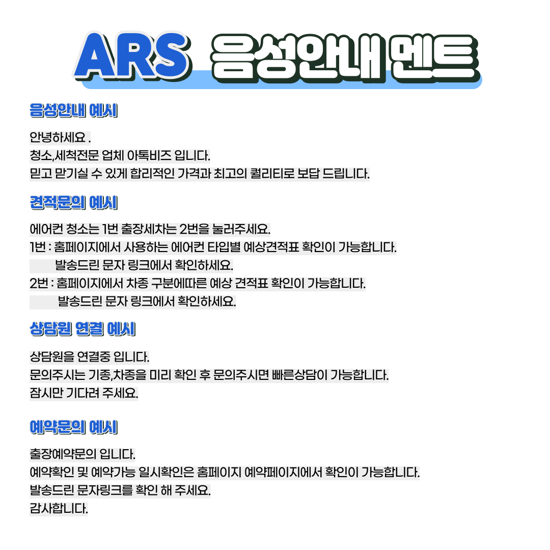 출장 청소업체 ARS 전화 음성/문자 자동안내 멘트