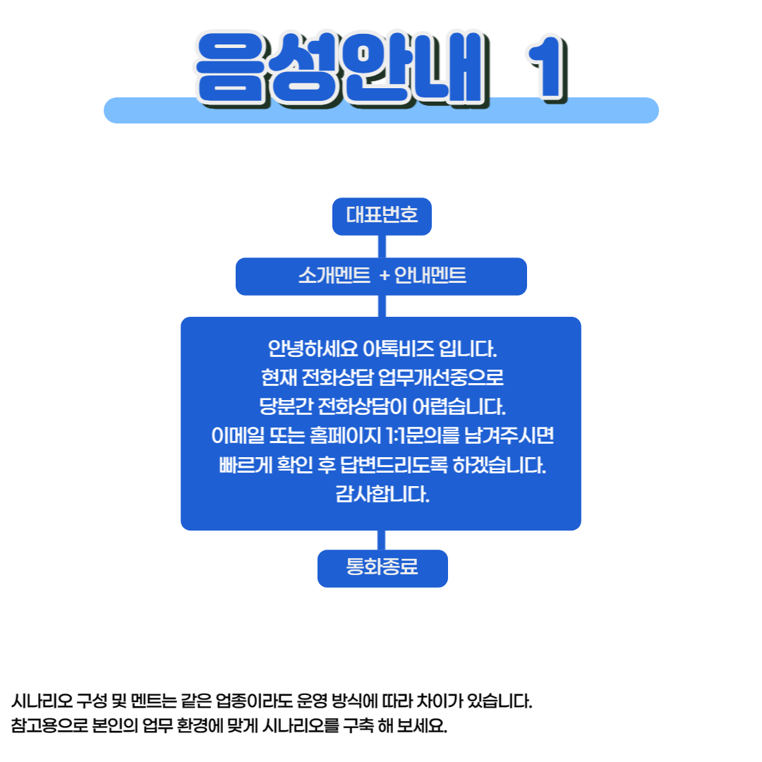 | 업종별 하계휴무(여름휴가) ARS 음성안내 멘트 ( TTS 기능으로 쉽고 간편하게 !) (1) | 2023.05.15 |