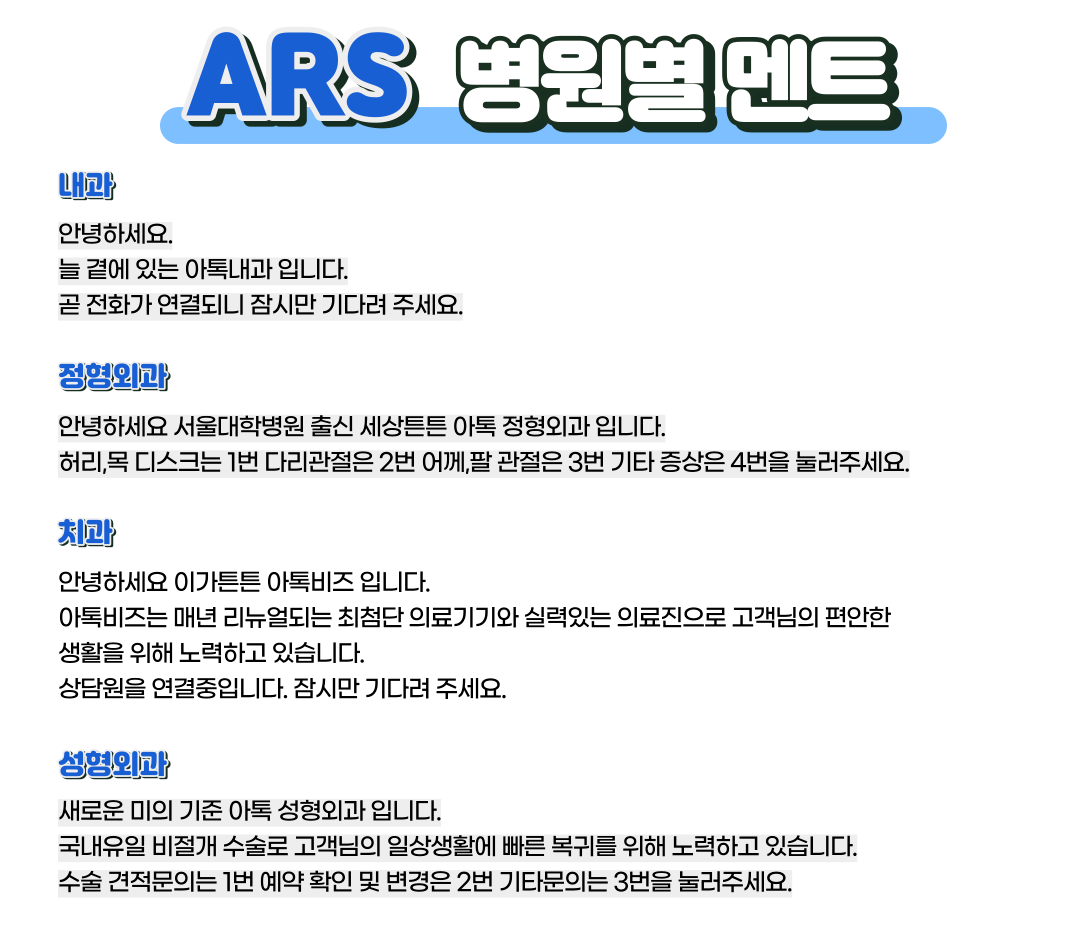 ◆ 병원별 ARS 전화안내 멘트 예시