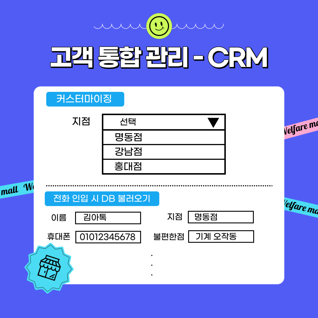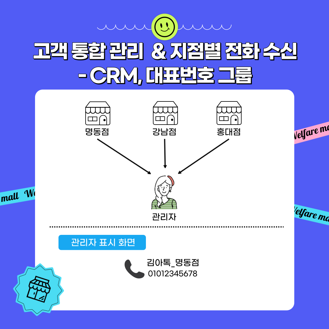 매장을 혼자서 여러 개 운영 중일 경우 각 지점별로 들어오는 전화로 인해 관리에 어려움이 있는 경우가 있습니다. 또 전화를 혼자서 다 받지 않더라도 매장별로 고객 관리를 하고 있는 경우 매번 각각 확인해야 하는 번거로움이 있는데 CRM을 통해 사용자간 공유를 하고 통합으로 관리할 수 있어요.