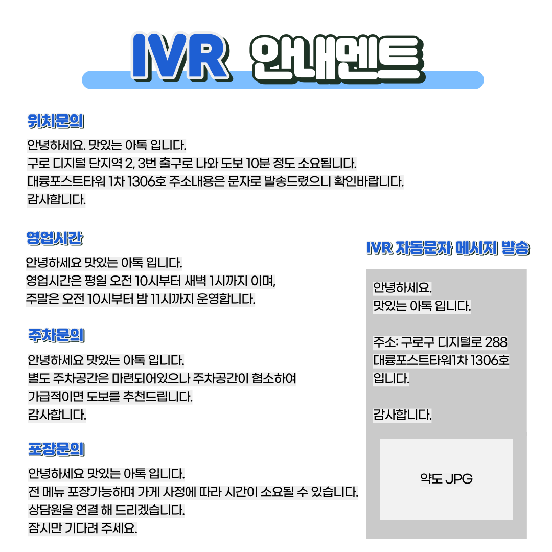 아톡비즈 서비스 ARS 안내멘트 매장 오프라인 가게 적용사례