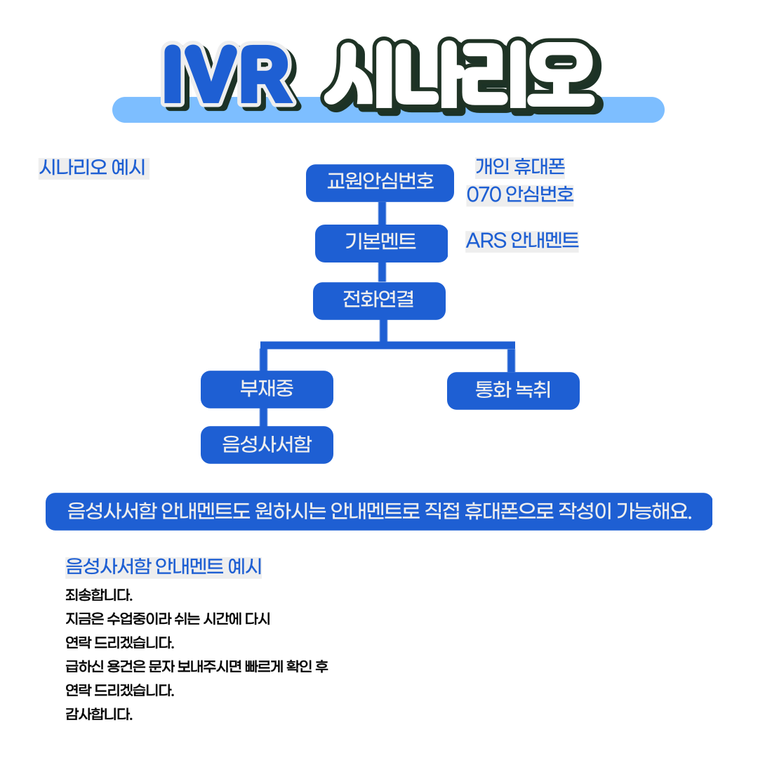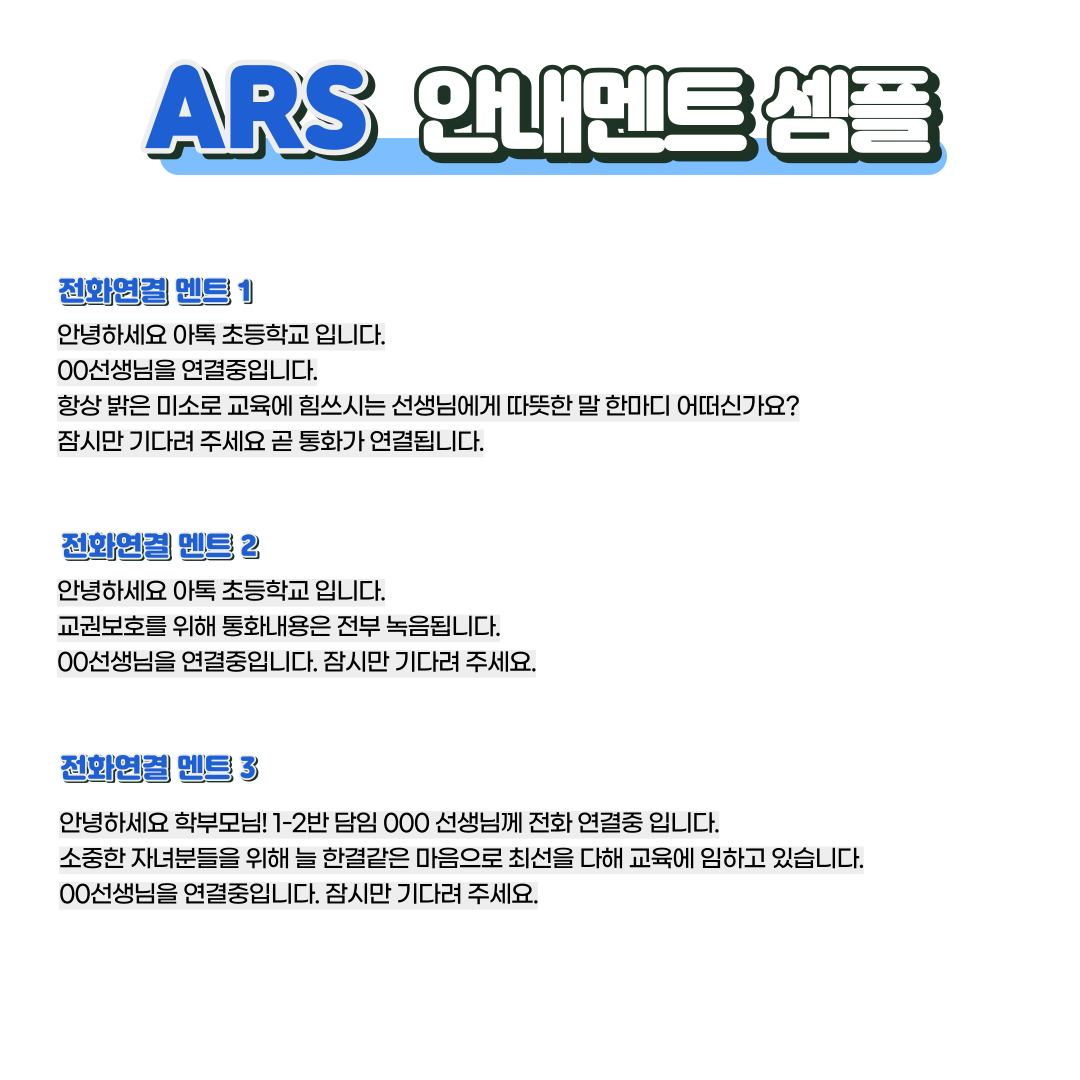 개개인의 안심번호로 학부모의 전화가 연결되면 ARS 자동음성안내멘트가 송출되며