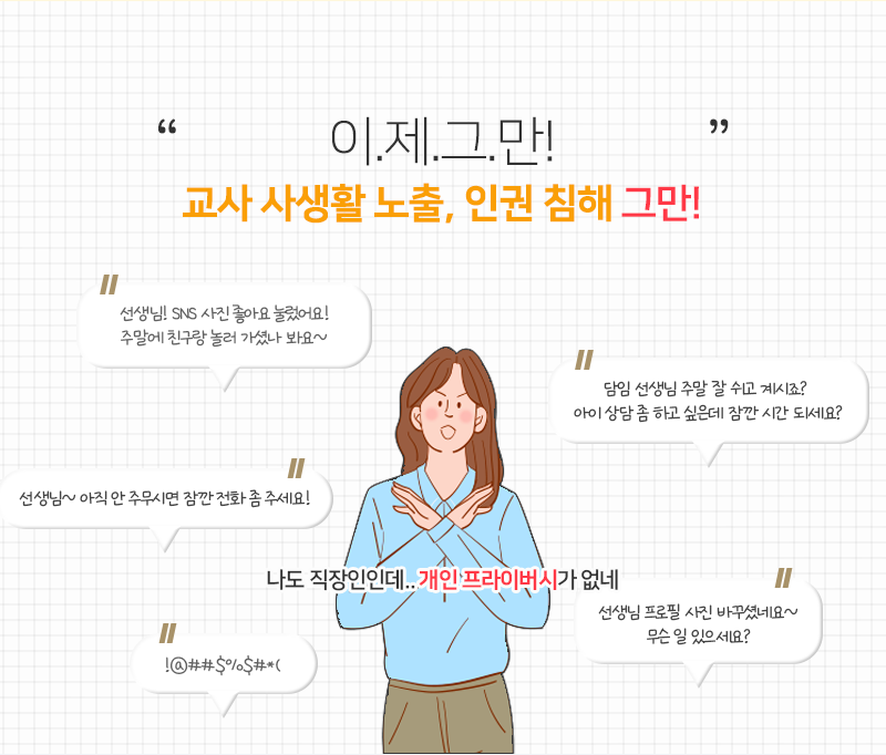학급 학생, 학부모에게 개인번호를 공개하면서 개인 SNS 사생활 노출로 인해 불편하셨던 적 있으신가요?