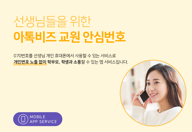 선생님 개인 핸드폰에 070번호를 연동하여 개인번호 노출 없이 전화ㆍ문자 소통하세요!