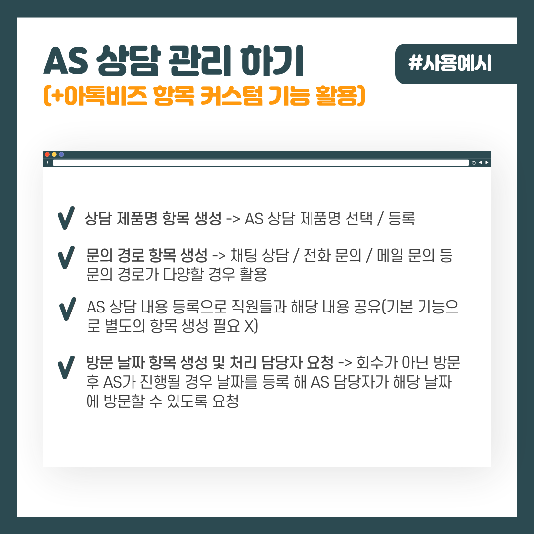 AS 상담 관리 하기(+아톡비즈 항목 커스텀 기능 활용)