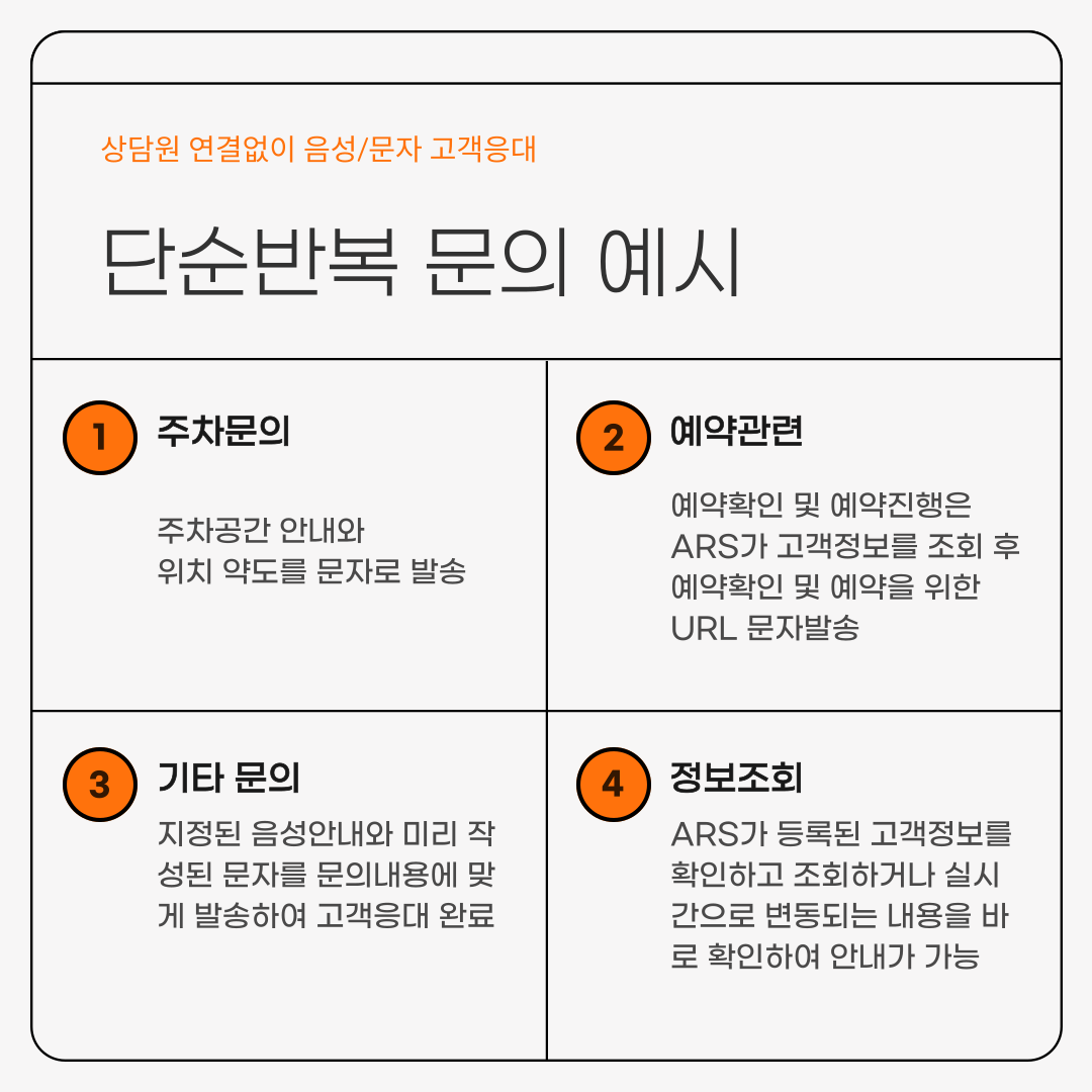 아톡비즈 ARS 서비스로 상담접수 및 간단한 문의답변은 자동음성안내로 상담원 연결없이 가능합니다.
