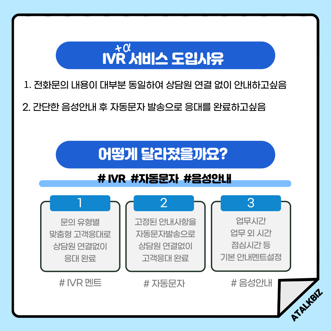- 아톡비즈 도입으로 상담원 없이 문의별 고객응대를 완료할 수 있음