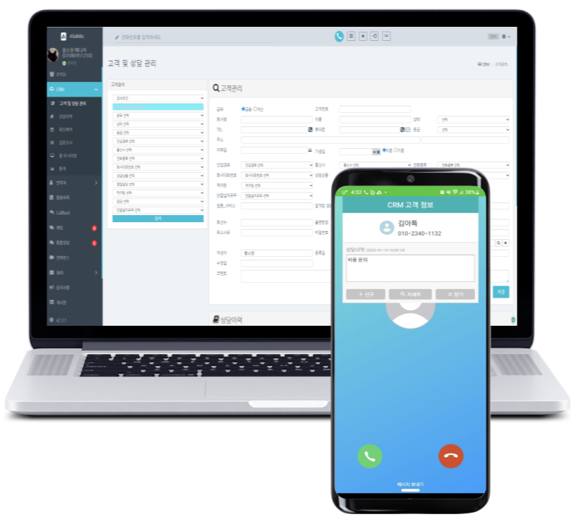 ✅ 전화기반으로 등록고객이 문의전화를 하면 고객정보 스크린 팝업으로 확인!