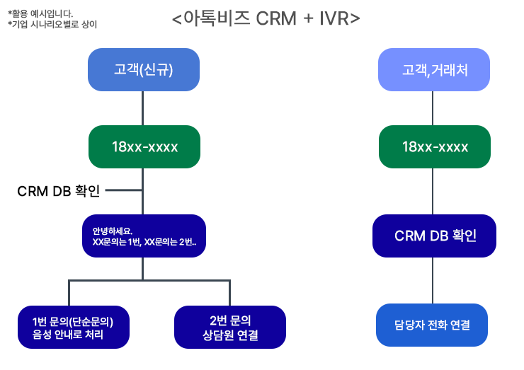| 통화 시 기존 고객정보, 상담내용 자동 불러오기 불가 | 전화 연동으로 고객정보, 상담내용 자동 불러오기 가능 |