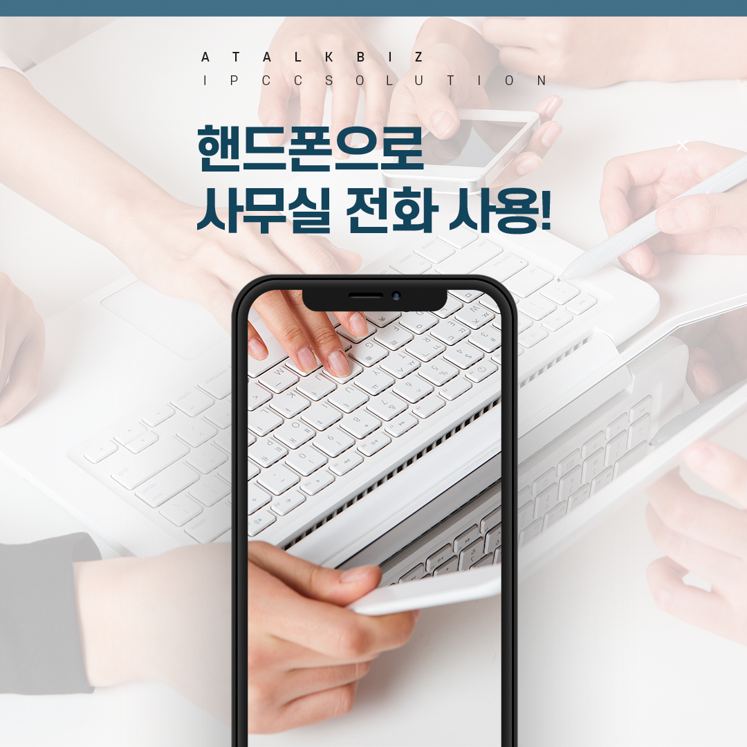 스마트오피스 구축을 원하시는 고객님, 외부에서 회사 전화를 받아야 할 일이 많으신 고객님, 불필요한 케이블을 줄이고 싶으신 고객님께서는 유선전화기 없이 핸드폰으로 사무실전화를 이용해보세요. 외부에 있는 직원과 돌려주기, 내선통화, 당겨받기 등 기능을 사용하실 수 있으며, 아톡비즈에서 기업에서 필요한 다양한 프로그램 채팅, 조직도 등과 함께 사용이 가능합니다.