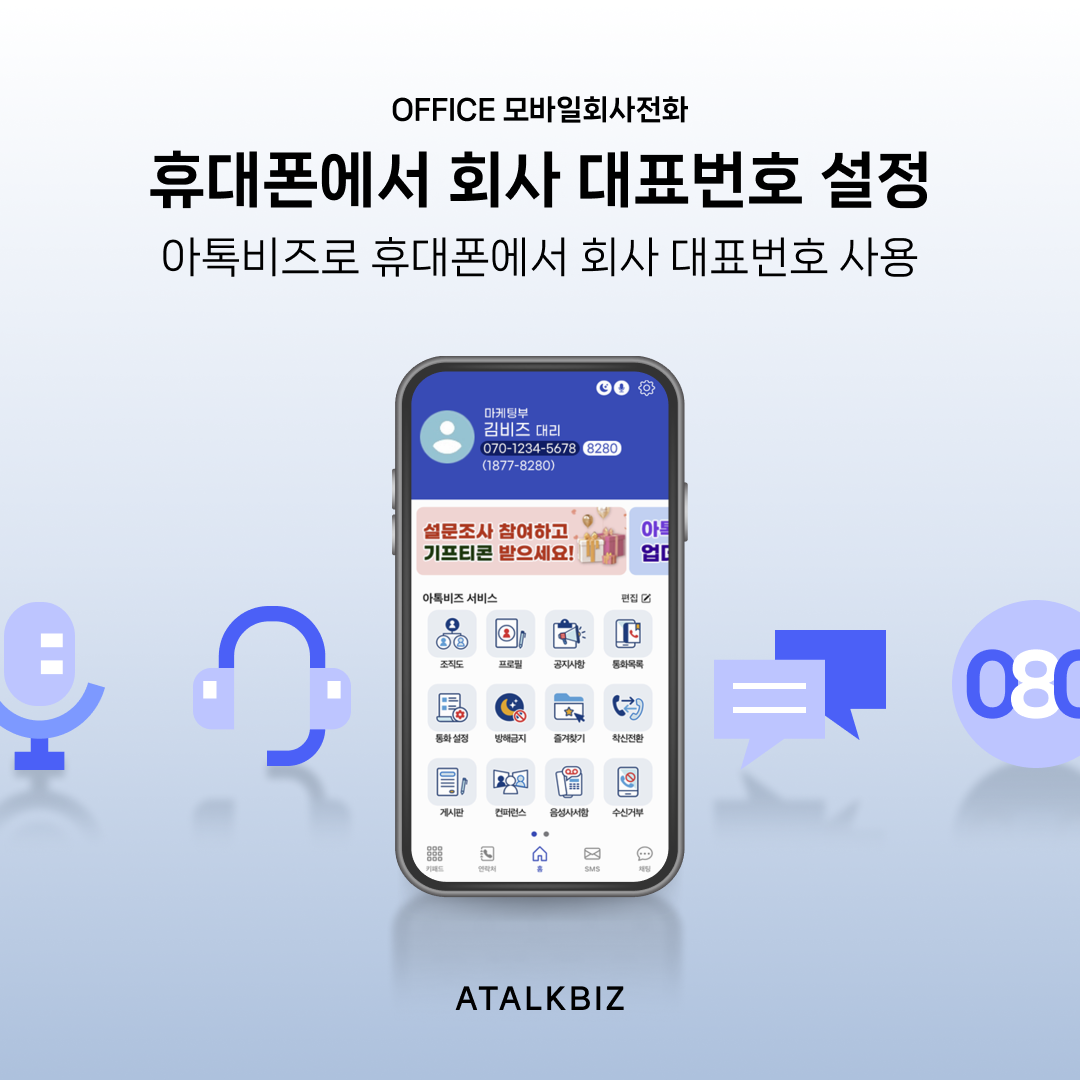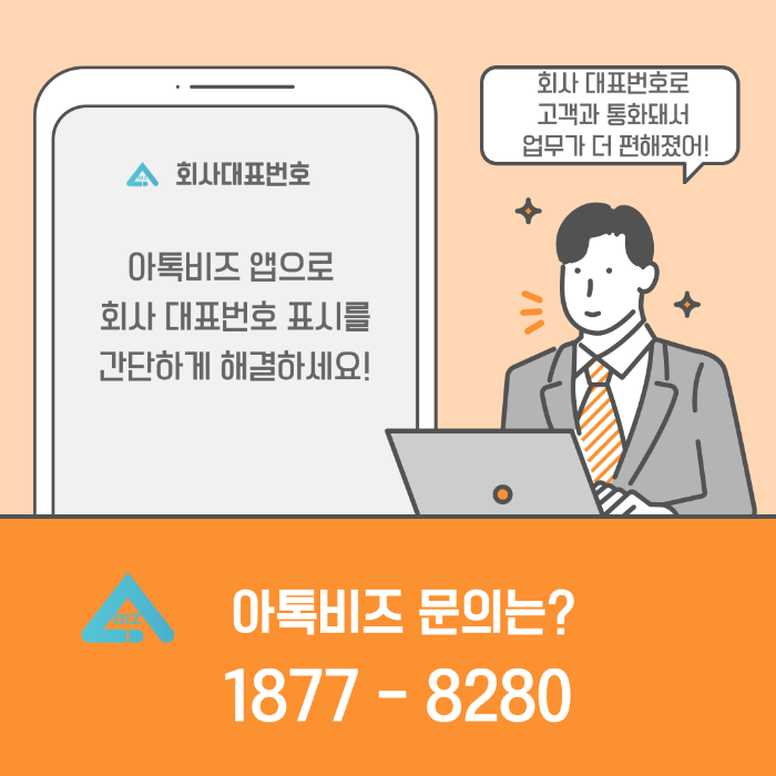 기존에 사용하던 회사 대표번호를 그대로 아톡비즈 서비스를 통해 모바일에서 수/발신 통화하는 것도 가능합니다.
