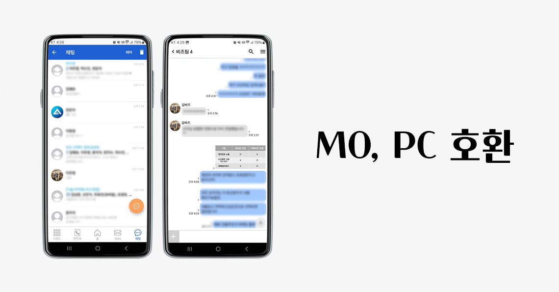 아톡비즈는 모바일 APP, PC 모두 지원합니다. MO, Web에서도 편리하게 메신저를 사용해 보세요.