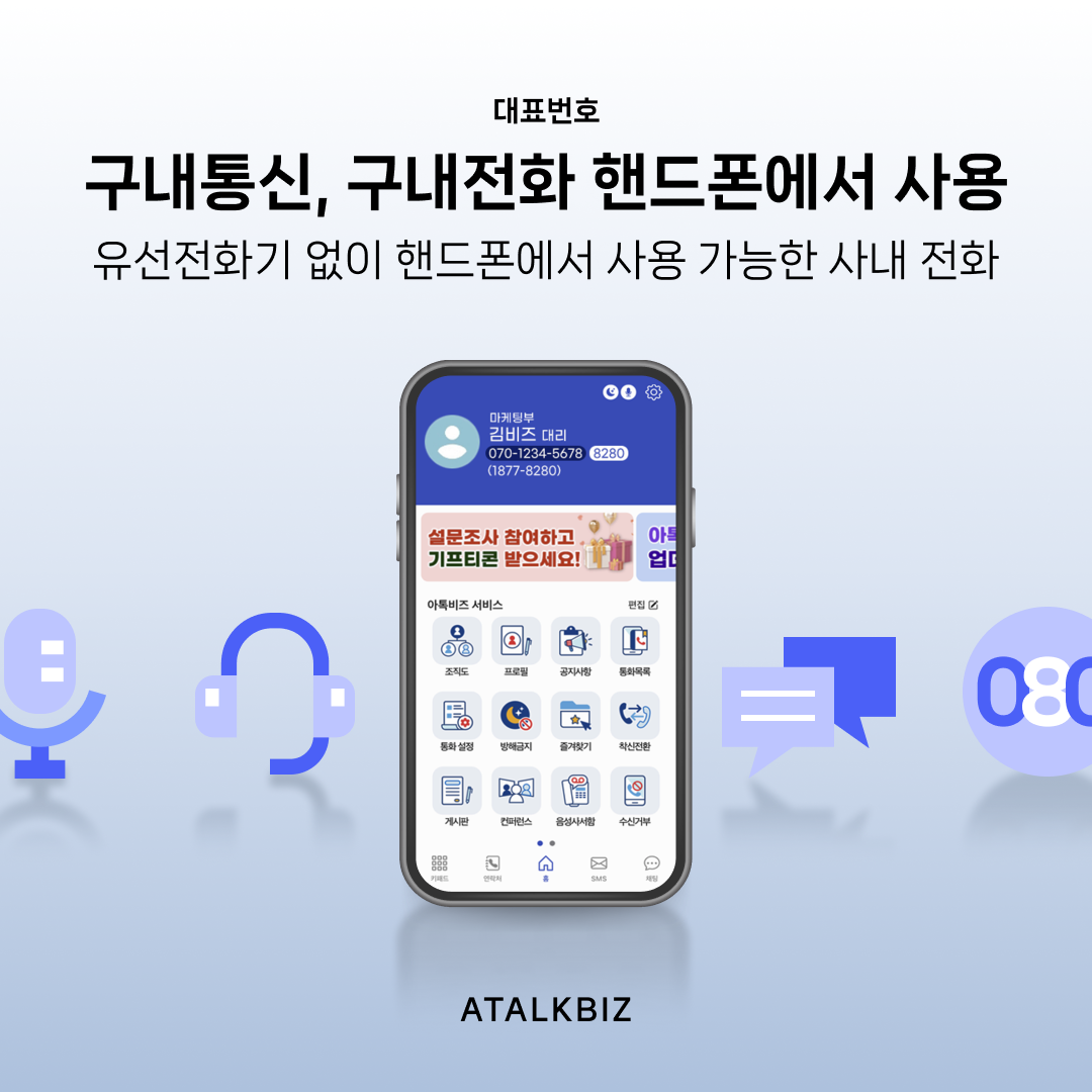 아톡비즈 도입 중견기업들의 경우 직원이 많은 만큼 입사, 퇴사, 자리이동 시 유선전화기 관리에 많은 어려움을 겪고 있었습니다. 아톡비즈를 도입하게 된 이유도 유선전화기를 관리하는 것에 소요되는 시간을 줄이고 싶다는 이유가 가장 컸죠. 구내통신 환경으로 많은 제약이 따르지 않을까 걱정하셨었는데, 아톡비즈는