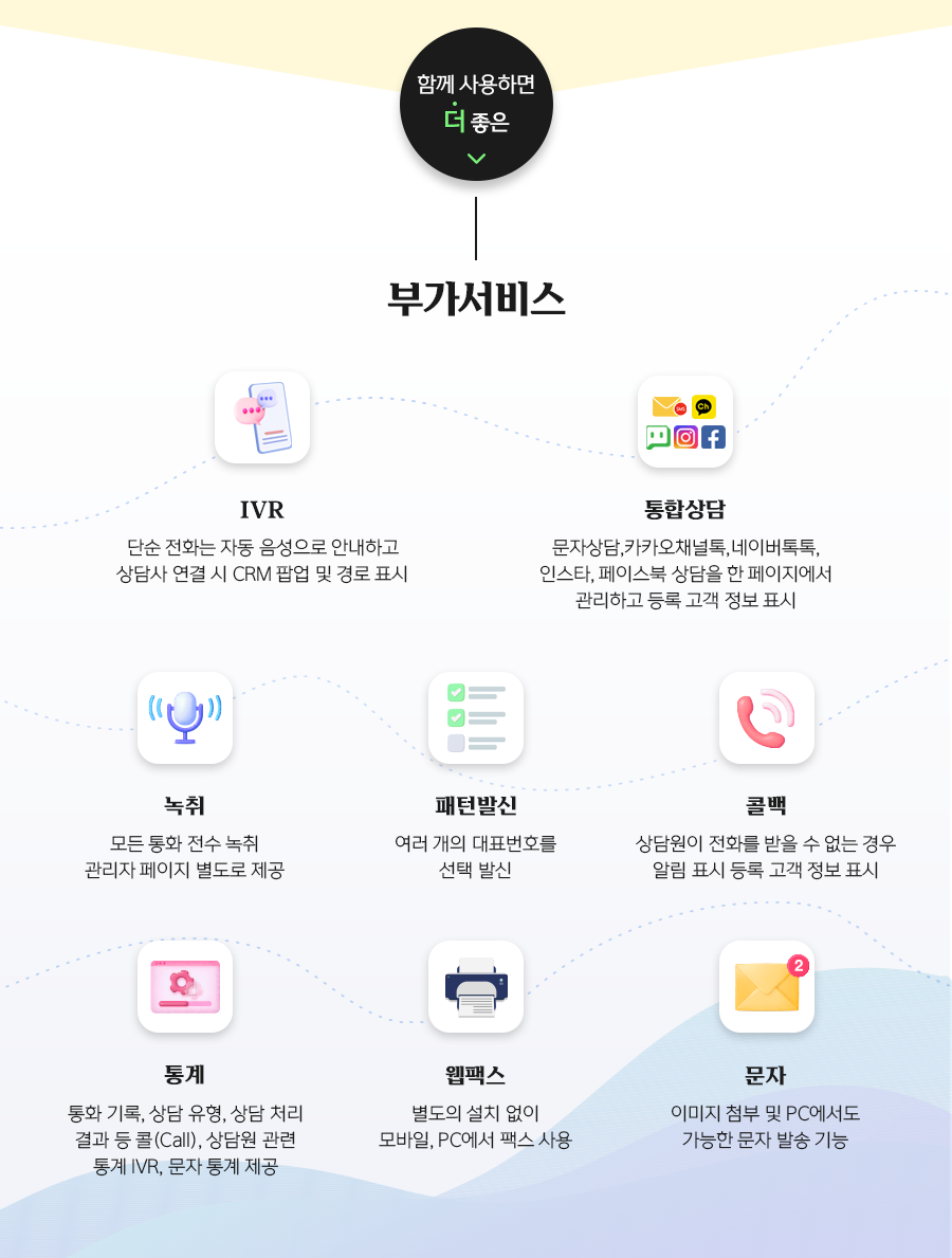 기본적으로는 프로그램 초기 도입 그대로 사용하나 아톡비즈에서는 항목을 직접 커스터마이징 하여 현재 업무 상황이나 업종에 맞춰서 사용할 수 있다는 편리성이 있습니다. 또한 전화와 관련된 여러 서비스들과 결합하여 사용할 수 있다는 장점이 있습니다.