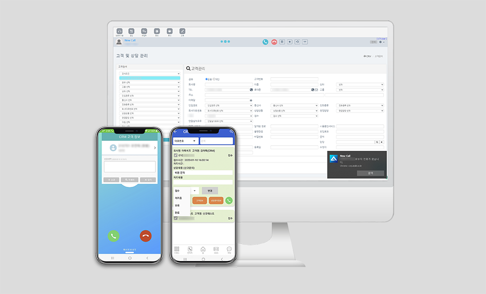 <전화, 채팅을 통합관리 할 수 있는 아톡비즈 시스템>