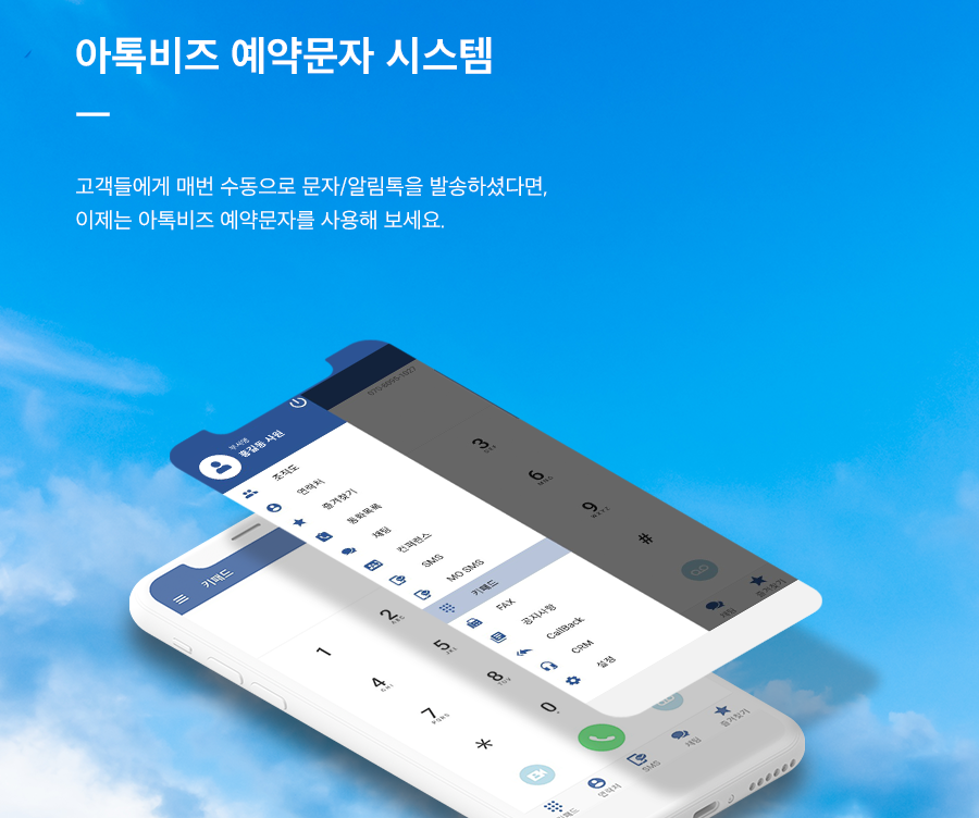 또한 아톡비즈에서는 스마트한 고객관리를 돕는 CRM프로그램과 고객에게 홍보,광고 및 예약문자를 안전하고 간편하게 발송할 수 있는 예약문자시스템도 함께 이용하실 수 있습니다.