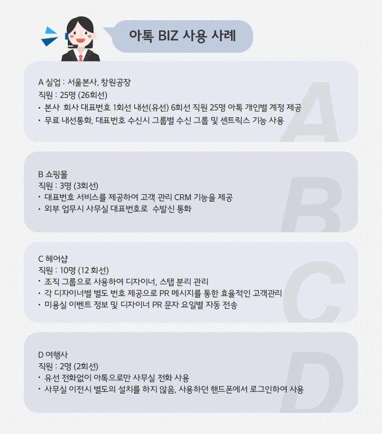 |아톡비즈 서비스로 언제 어디서나 위치 상황에 제약없이 구내 통신 및 회사 업무를 진행해보세요.