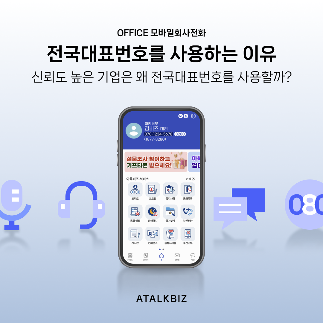 전국대표번호는 전화만 사용하기도 하지만 많은 서비스와 결합 사용을 하는 경우가 있으니 번호 사용부터 같이 통합 사용할 서비스에 대해 궁금하신 점은 언제든지 아톡비즈로 문의 주시길 바랍니다.