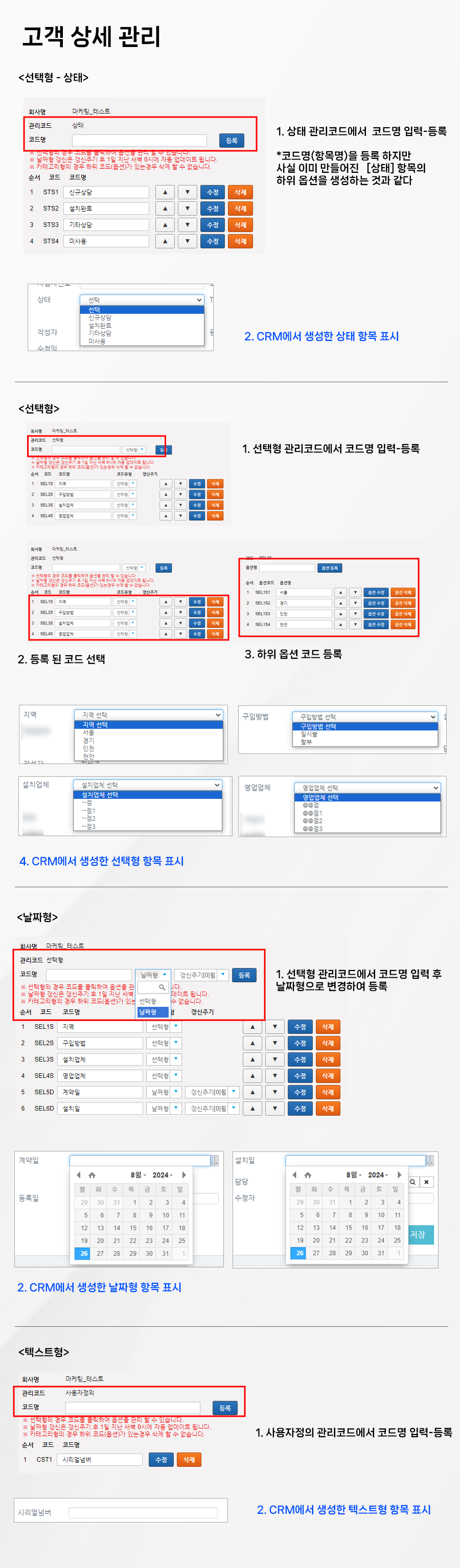 <제조업 고객관리 항목 생성하기>