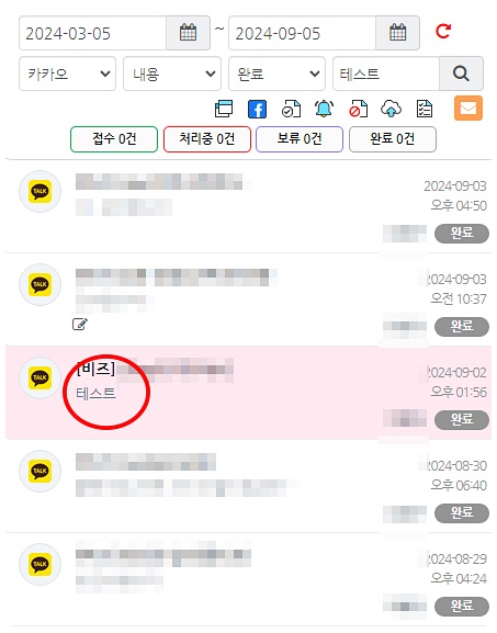 | ◾ 채널별/내용별/상태별 채팅 상담 모아보기 - 원하는 대로 채팅상담을 모아서 확인 가능 |