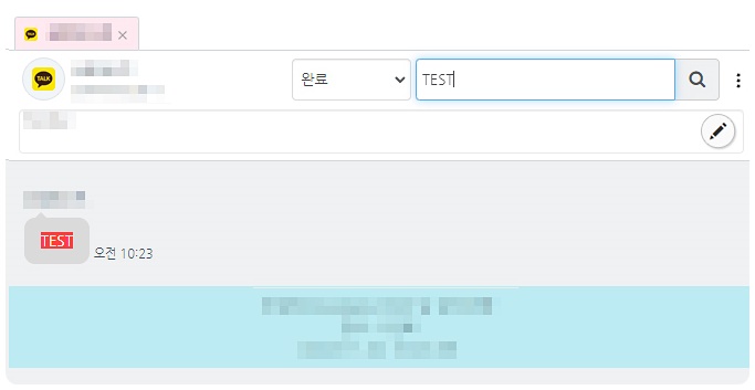이번에는 특정 채팅방에서 나눈 채팅 중에서 검색 기능을 활용해볼게요. 'TEST'라고 말했던 채팅을 찾으려 한다고 할게요.