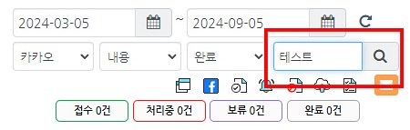 혹은 다른것은 기억나지 않고 회사명, 내용 등만 기억나는 경우 '처리상태'를 설정한 후 🔎를 누르면 검색 가능해요.