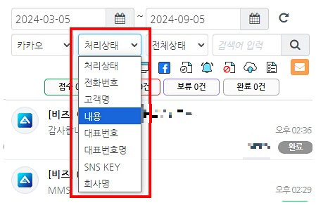 | ◾ 채널별/내용별/상태별 채팅 상담 모아보기 - 원하는 대로 채팅상담을 모아서 확인 가능 |